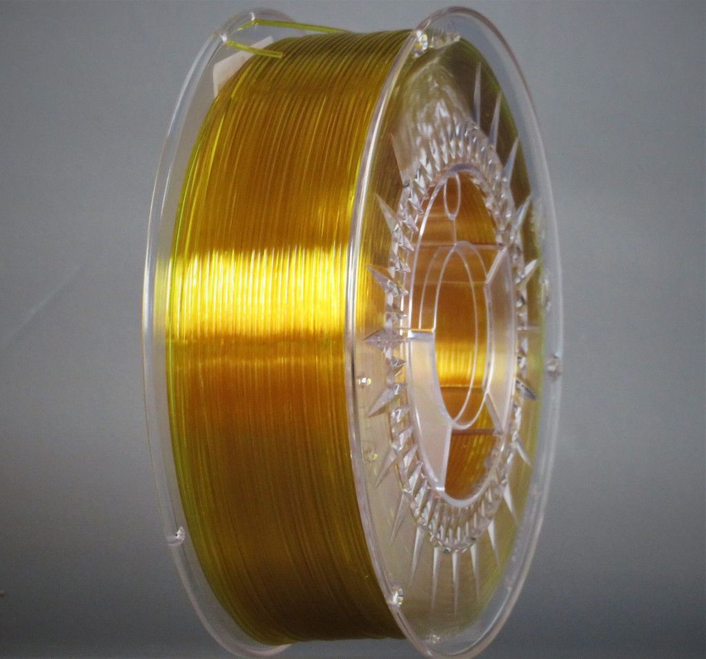 A PETG a PET glikollal módosított változata, amelyet a 3D nyomtatás világában az egyik legjobb műszaki és hobbi célú filamentként tartanak számon. Kombinálja a PLA könnyű nyomtathatóságát a szívósabb, rugalmasabb tulajdonságokkal. Már 220–260 °C között nyomtatható, és 70–90 °C fűtött asztalt igényel a vetemedésmentes nyomtatáshoz. UV- és ütésállósága miatt akár kültéren is jól teljesít, de nedvességre érzékeny, ezért nyomtatás előtt javasolt szárítani.