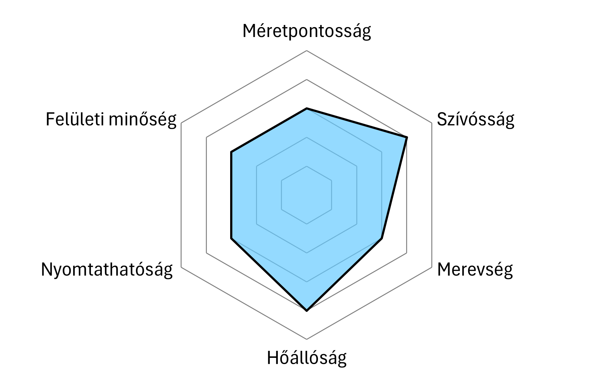 - Ütésálló, tartós, megmunkálható alkatrészekhez (csiszolható, ragasztható, aceton-gőzzel fényesíthető).